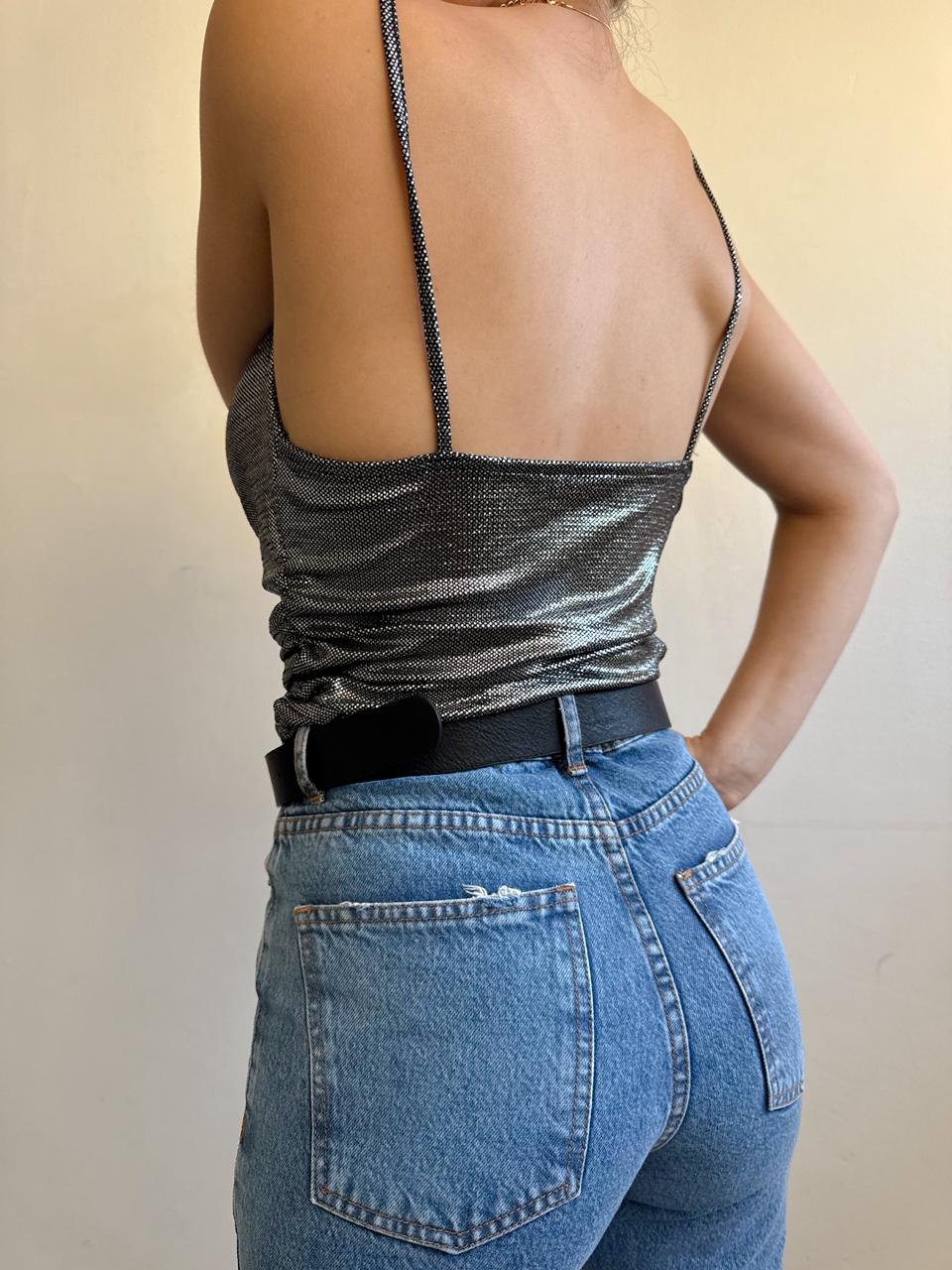 Blusa bretel escote buche tiffany.